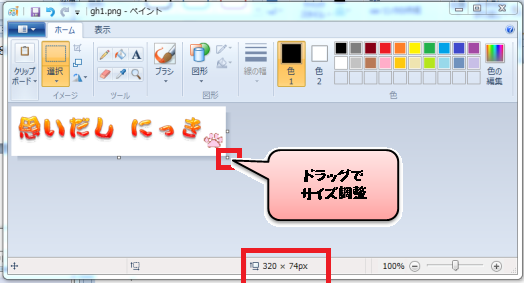 サイズの変更は四角のハンドルをドラッグして調整します。