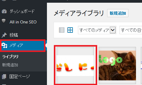 作ったロゴ画像をメディアライブラリにドラッグ&ドロップします。