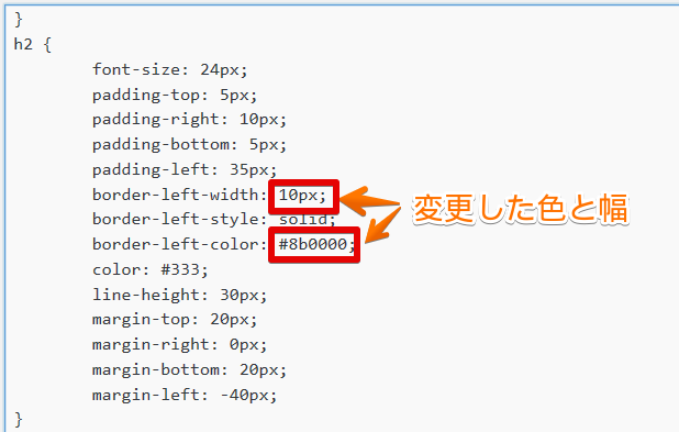 h2のボーダーの色や太さをもう少し変えたいな、とか・・